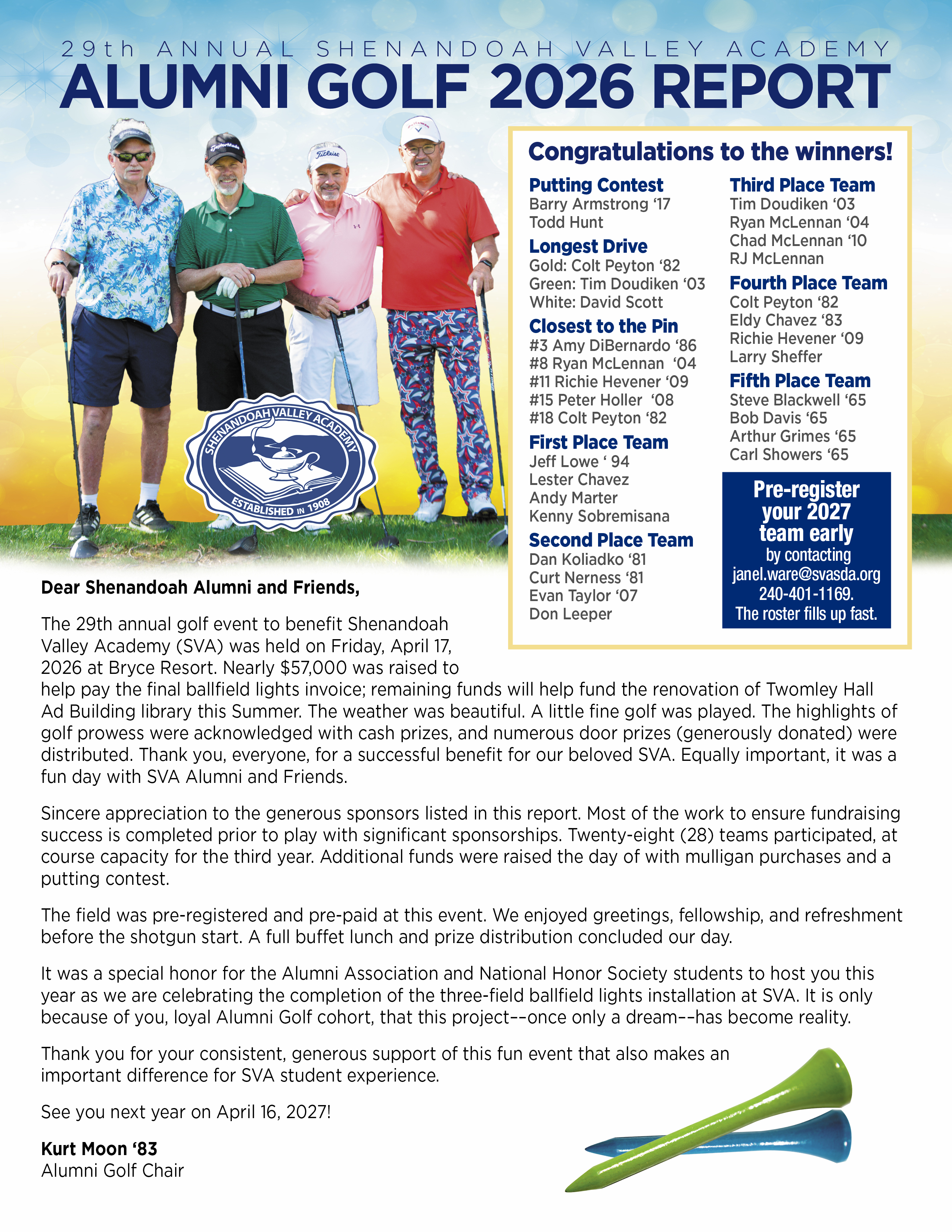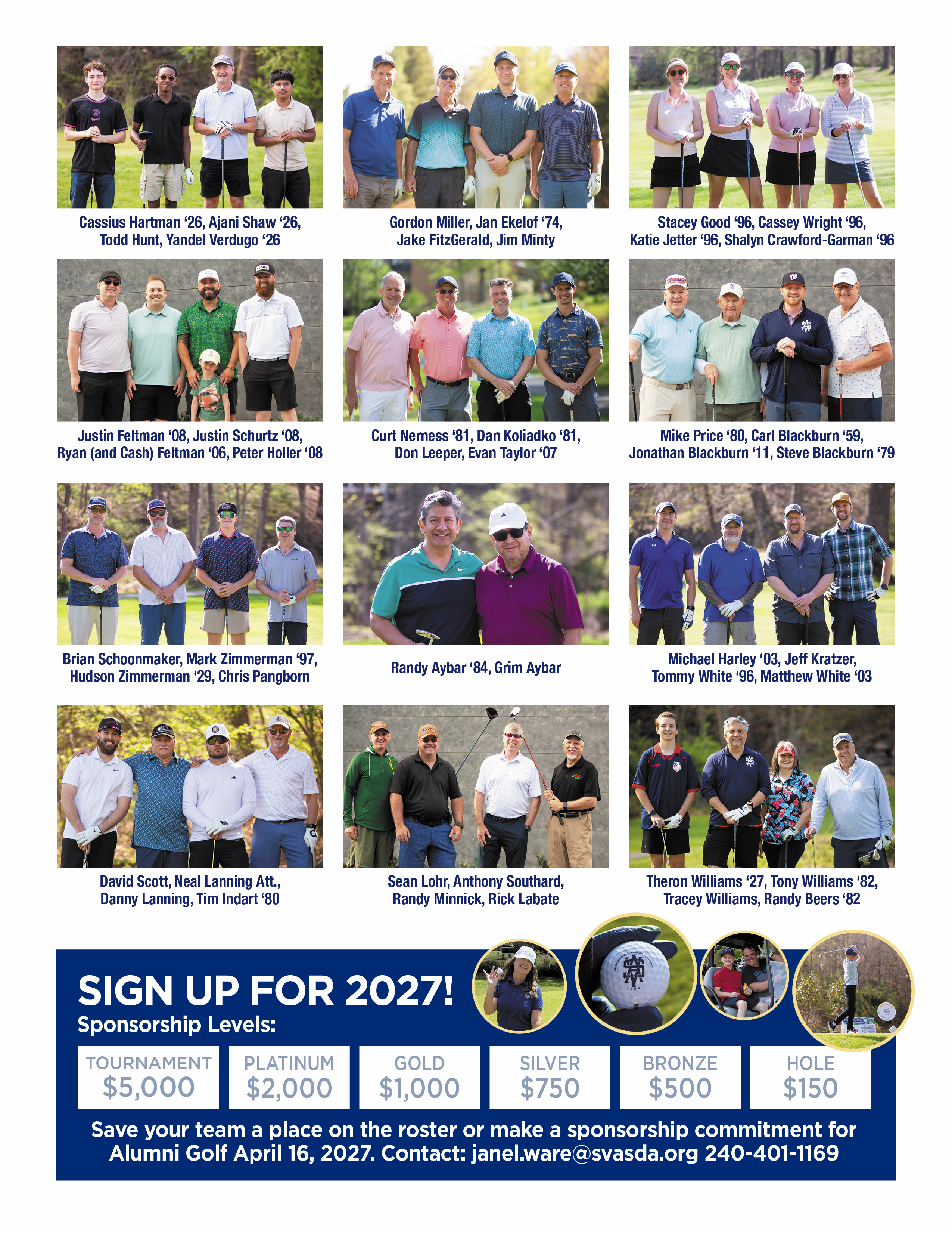 2027 Alumni Golf Player and Sponsor Contact: